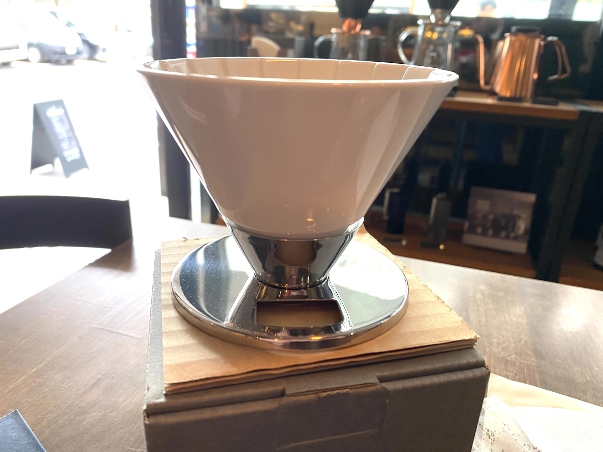 この体験でもらえるドリッパーは有田焼。磁器なので熱伝導が悪く、お湯が冷めにくいことから毎回安定して同じ味わいを抽出しやすいことが特徴になっています。つるりとした高級感のあるつくりでデザイン性も高いので、インテリアとしても使えるのがうれしい。