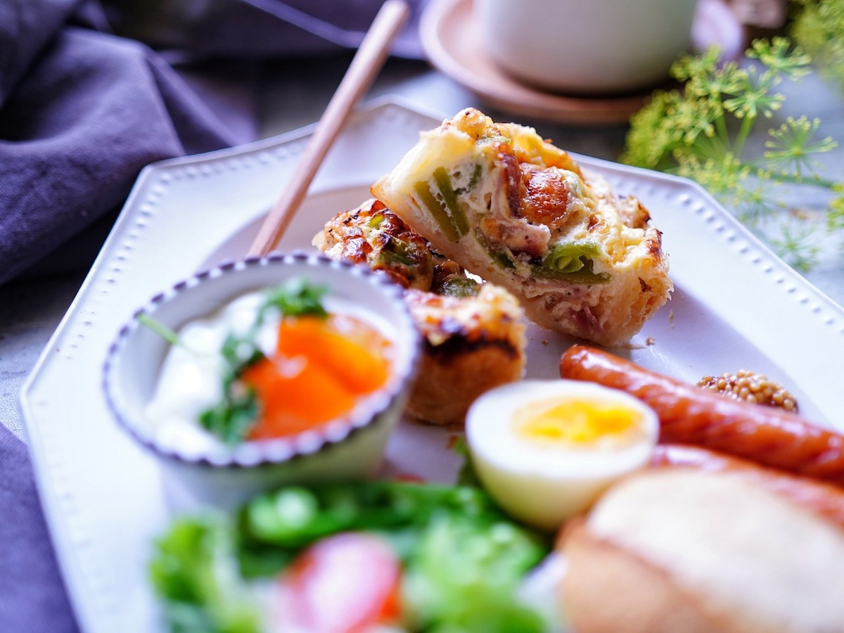 今回は、朝食のワンプレートに添えて。とはいっても、キッシュが主役のひと皿です。