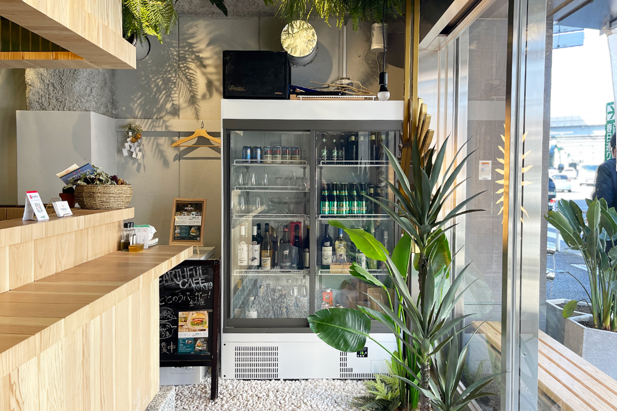 店内のショーケースには、クラフトビールやナチュラルワイン、沖縄のお酒などがずらり。