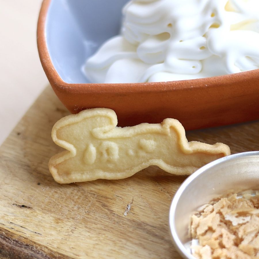 ロゴからそのまま飛び出てきたかのような再現度のウサギ型クッキーで、先ほど登場した「Lolo」やスコーン、プリンといったスイーツにプラス80円で添えることが可能。