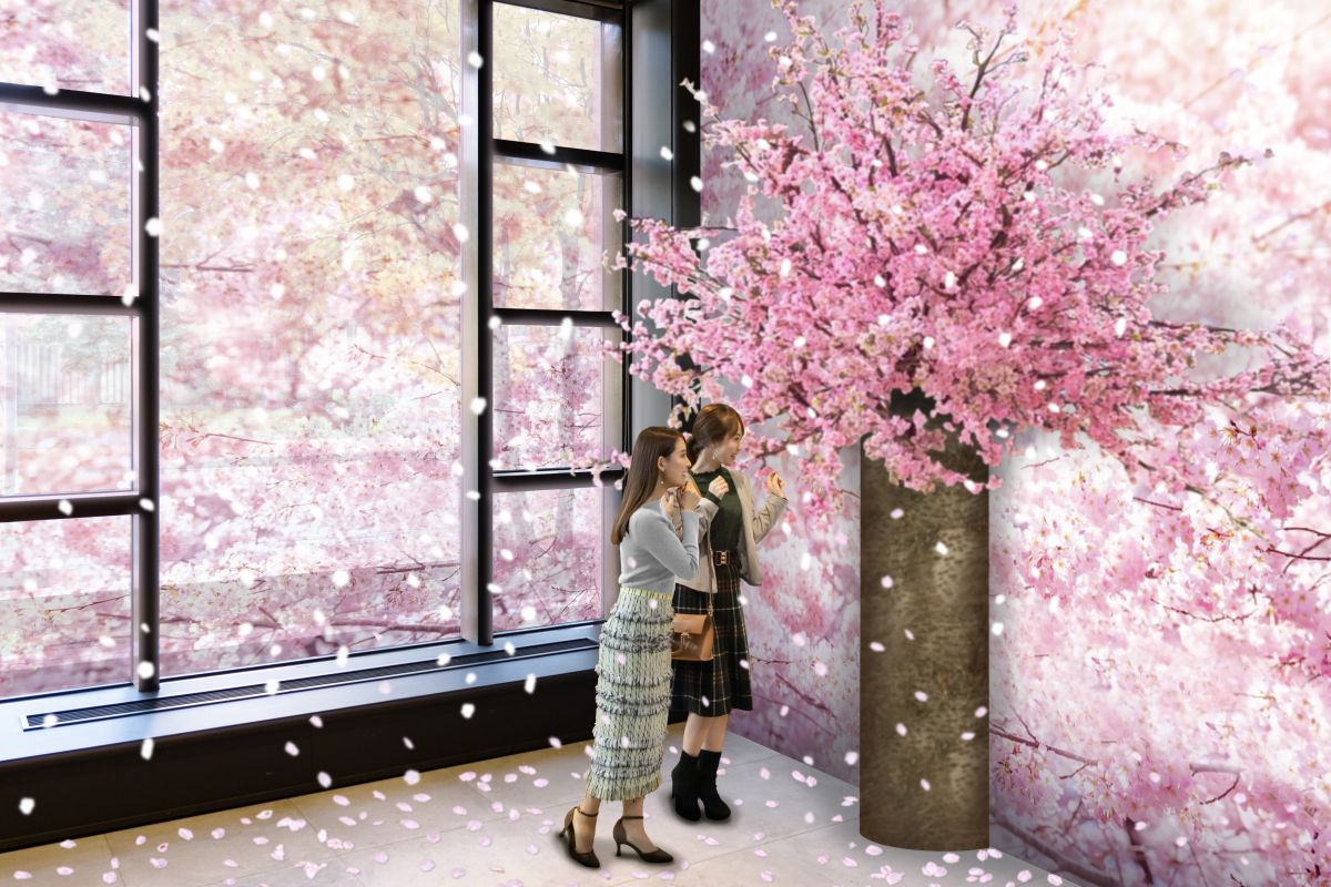 店内に⼊ってすぐの⼀⾓に、満開の桜の⽊のオブジェが登場。全⻑約2mの⽊に咲き誇るエゾヤマザクラは圧巻。さらに、舞い降る花びらからは桜の⾹りがするので、⾒るだけでなく⾹りでも桜を存分に楽しむことができます。「桜⾹る、桜の⽊」は旅の思い出に写真を撮影するスポットとしてもおすすめです。