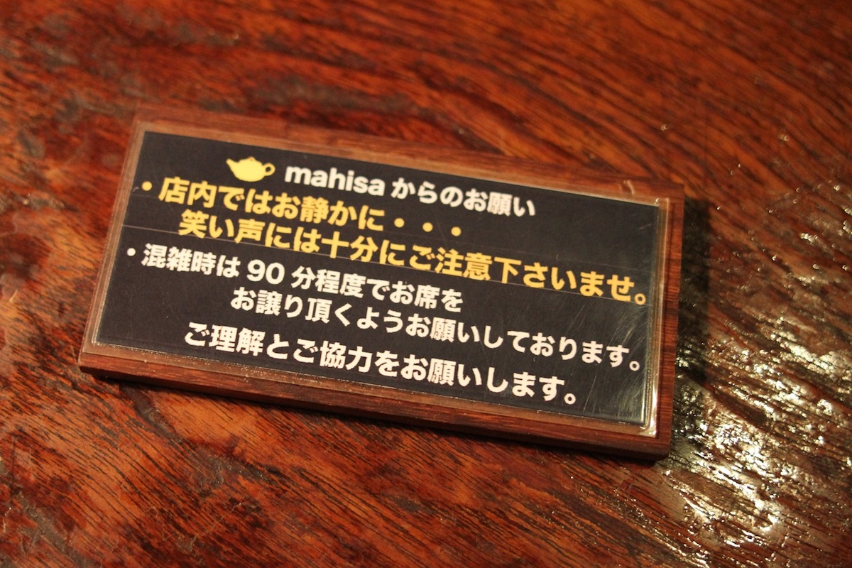 店内では静かに過ごせるようにと“お願いのプレート”が各テーブルに置かれています。ひとりで来店しても馴染みやすい雰囲気なので、初めてお店を訪れるときも安心です。