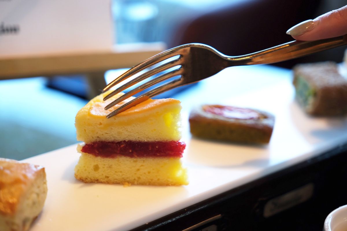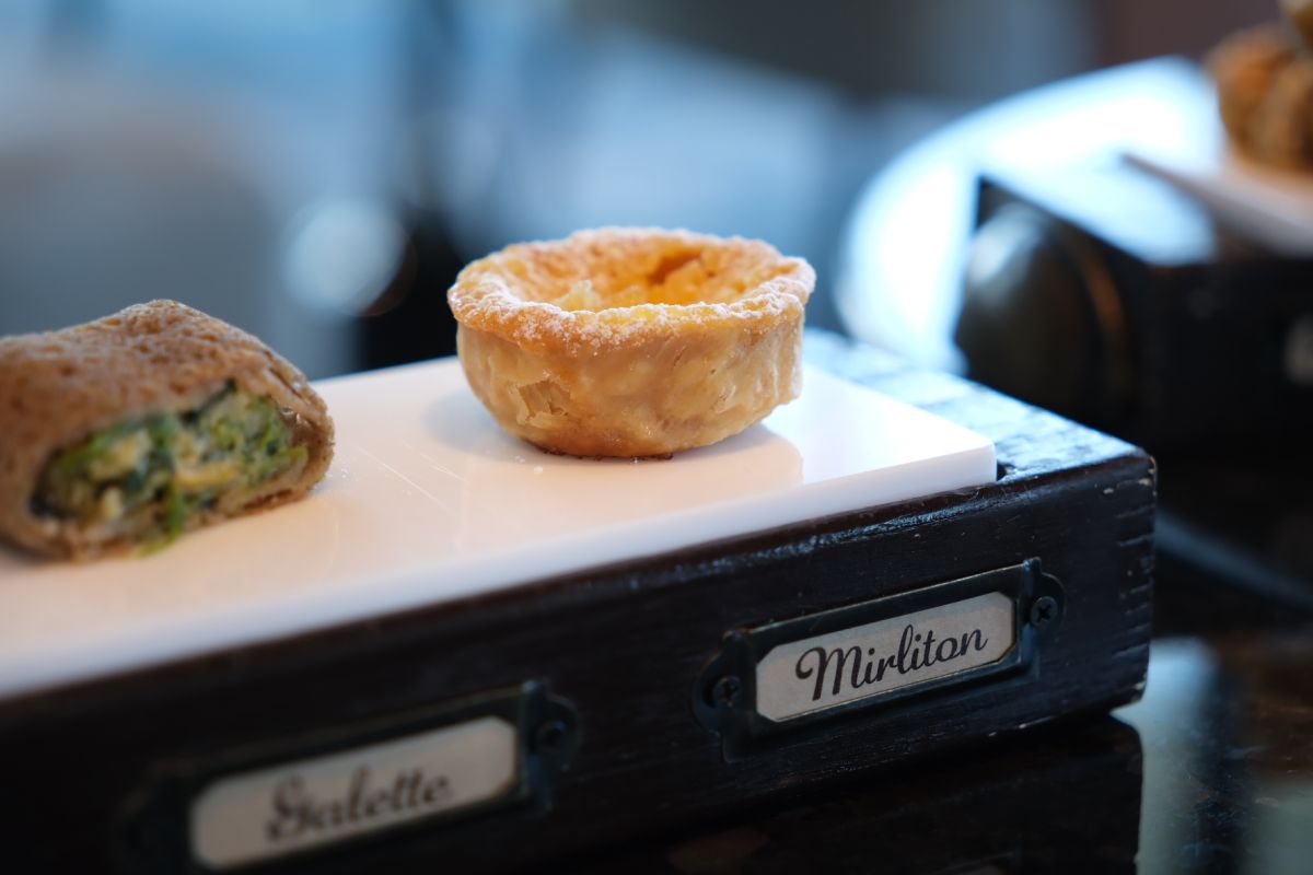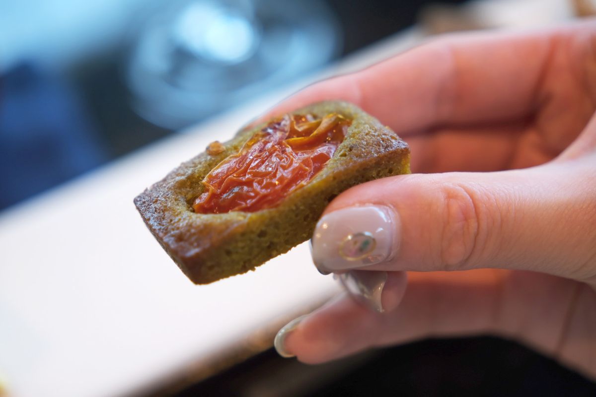 こちらも食事系のセイボリーメニュー。上には酸味のあるセミドライトマトがのっていて、ホウレンソウのフィナンシェ生地はほんのり甘さを感じる味わいです。