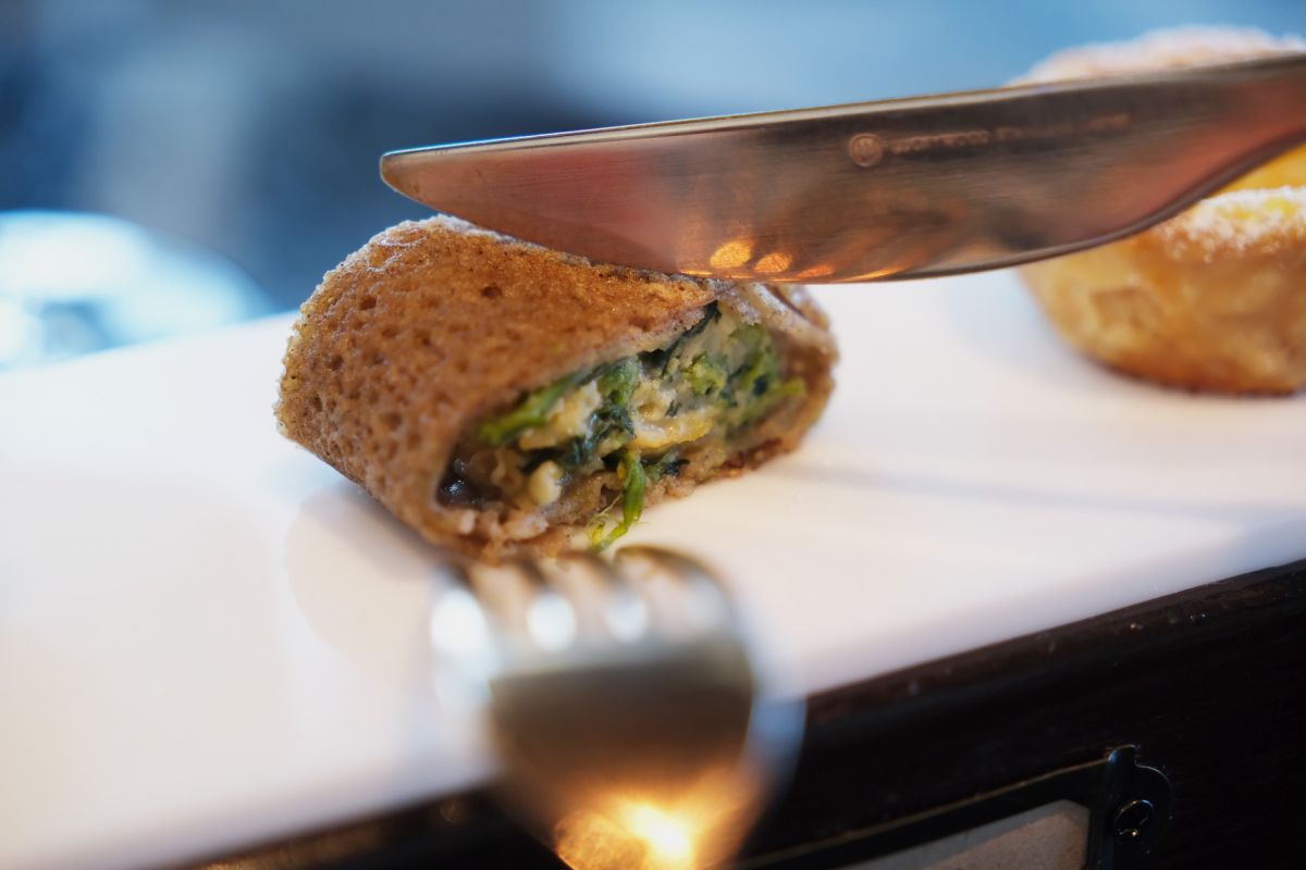 タマネギやホウレンソウを包んでメズム東京風に仕上げられたひと品。中はキッシュのような味で、野菜の存在感もしっかりと感じられます。モネの庭を想像しながらいただくと、当時の光景が浮かんでくるかも?