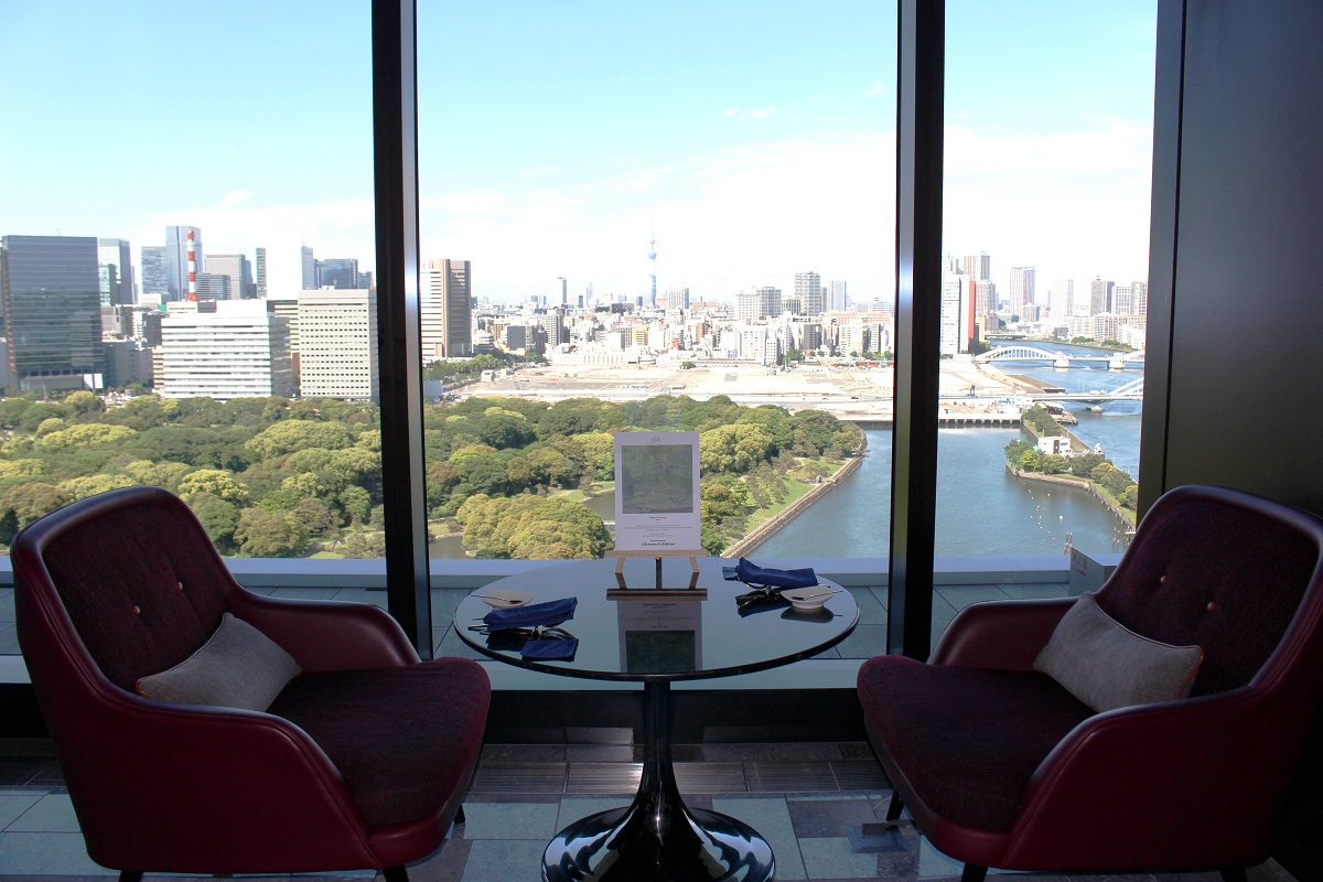 浜離宮庭園を見下ろす抜群の眺望のラウンジ