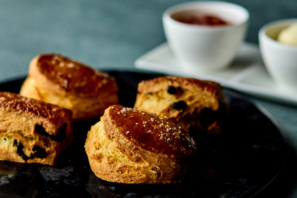 香ばしい小麦の豊かな風味が広がるスコーン。シーズンフレーバーは、ブルーベリーが楽しめます。ブルーベリーの特徴である、甘さのなかにほのかな酸っぱさがより感じられるよう、粒を残し焼き上げられています。 アプリコットジャムでさらにフルーティーさをプラスすると、より果実感が堪能できます。