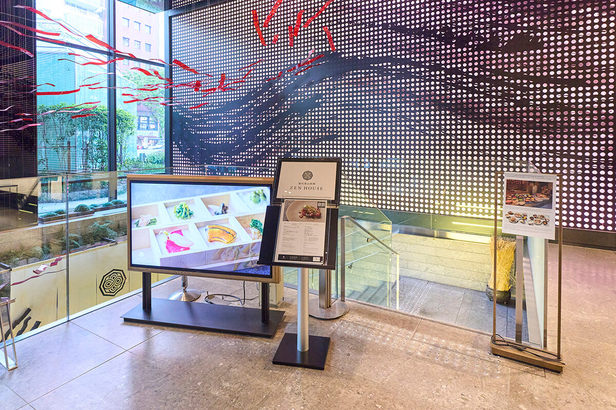 「現代里山料理 ZEN HOUSE」は、東京メトロ東銀座駅のA1出口を出てすぐの「ミレニアム三井ガーデンホテル東京」地下1階にあります。「ミレニアム三井ガーデンホテル東京」は、外国人客も多く訪れるデザインホテル。宿泊客の食事場所としても利用されていますが、レストランだけの利用もOK。