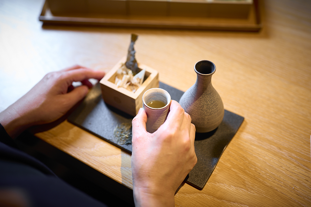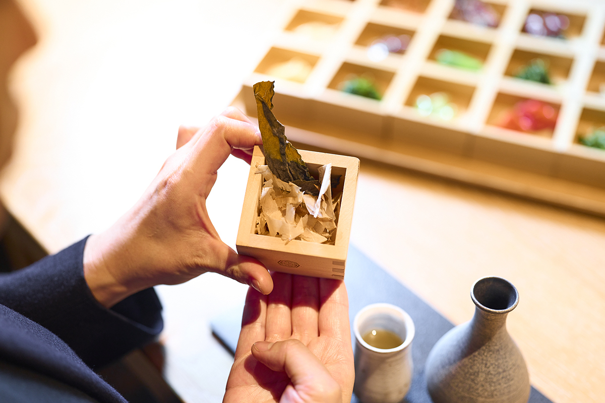 お茶のだしとなっている鰹や昆布も一緒に配膳されます。使っている食材を目で見てもらいたいという、お店の思いです。