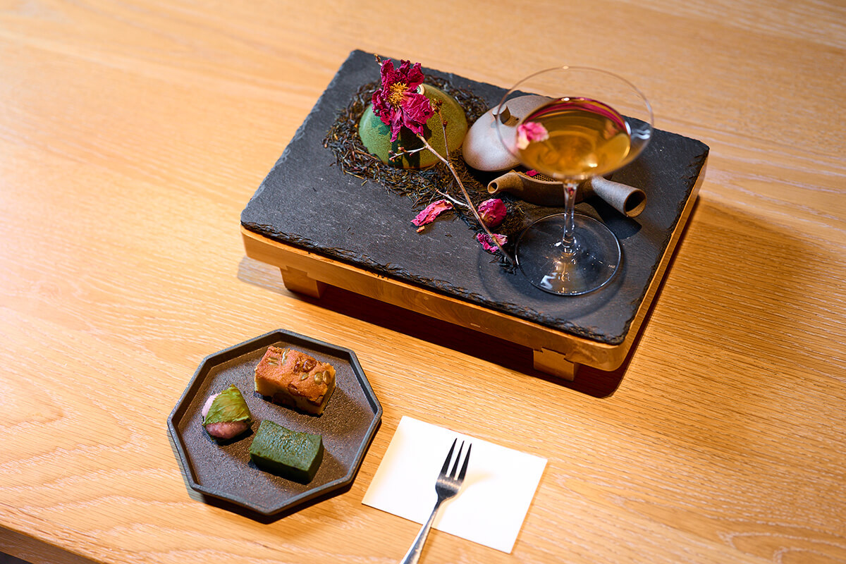 最後に甘味が出てくるのは、やっぱりうれしい! お腹いっぱいになりましたが、甘いものは別腹。見た目もとても美しいです。