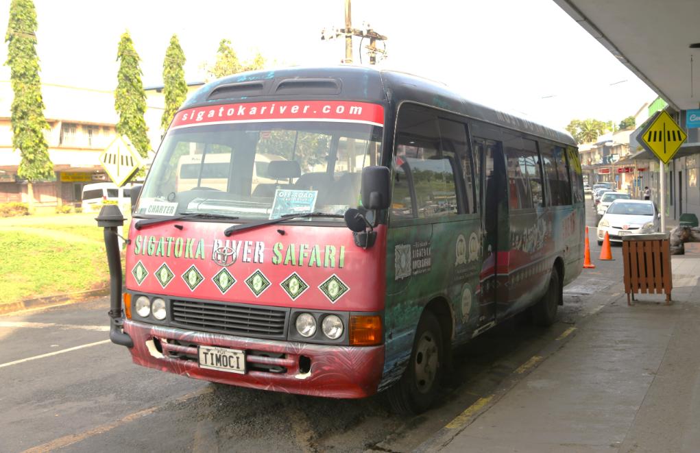 ナンディ国際空港から車で約1時間のところにあるシンガトカの町。この町にあるみやげもの店「Tappoo」内のカウンターでツアーの受付を済ませたら、そこから送迎バスに20分揺られてボート乗り場へ。ここからジェットボートに乗り込んで、クルーズの始まりです。