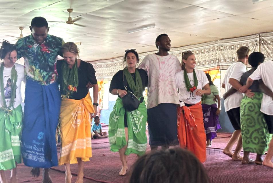 おなかがいっぱいなったら、ダンスタイムが始まります。村の人々が奏でる曲に合わせて、いっしょに楽しく踊ります。人懐っこいフィジーの人々の温かさにふれ、お別れが名残惜しいほど。