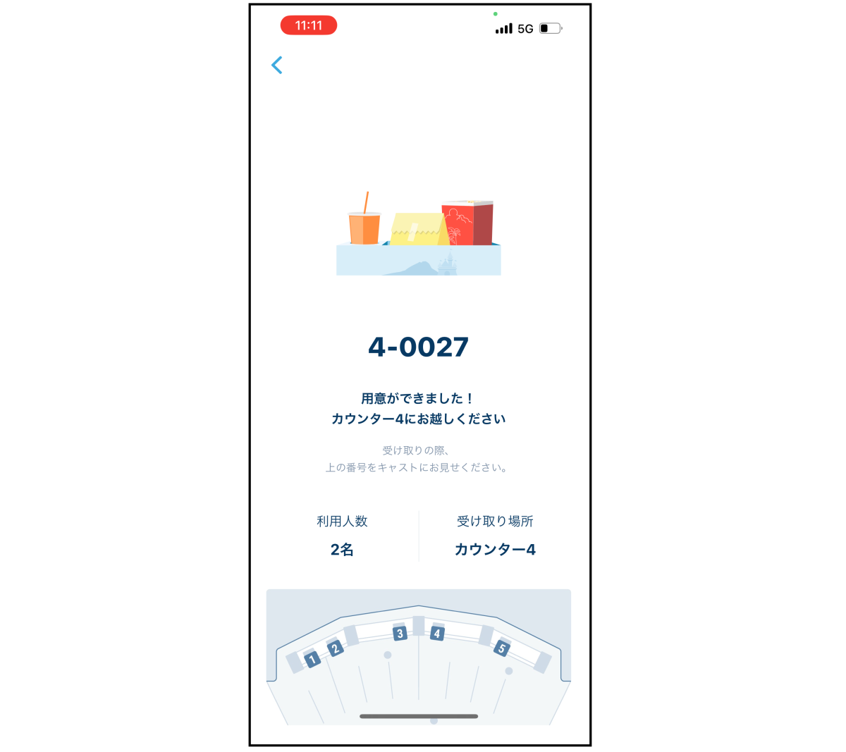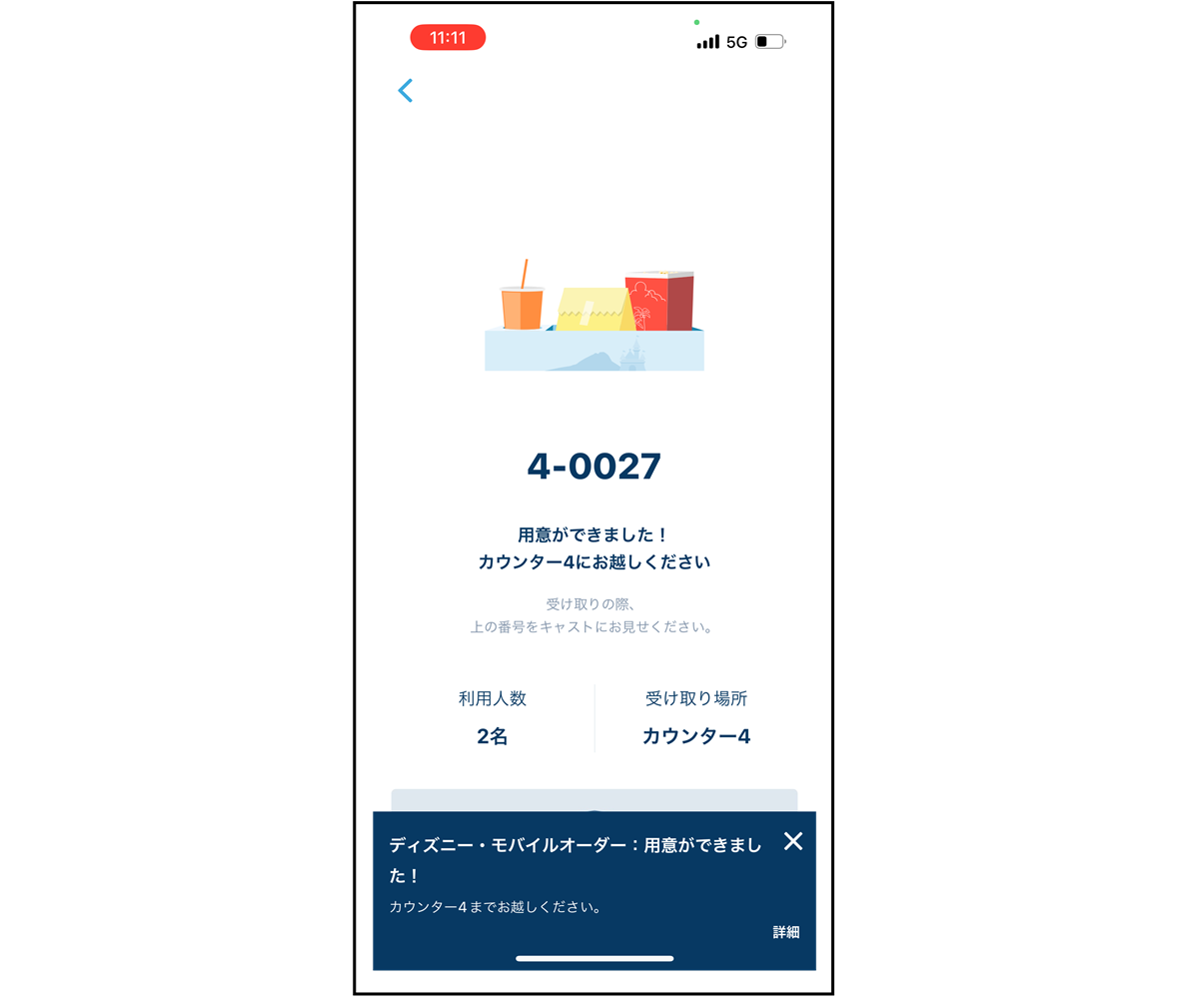 メニューができあがったら、再度プッシュ通知でお知らせ。表示されたカウンターへ。