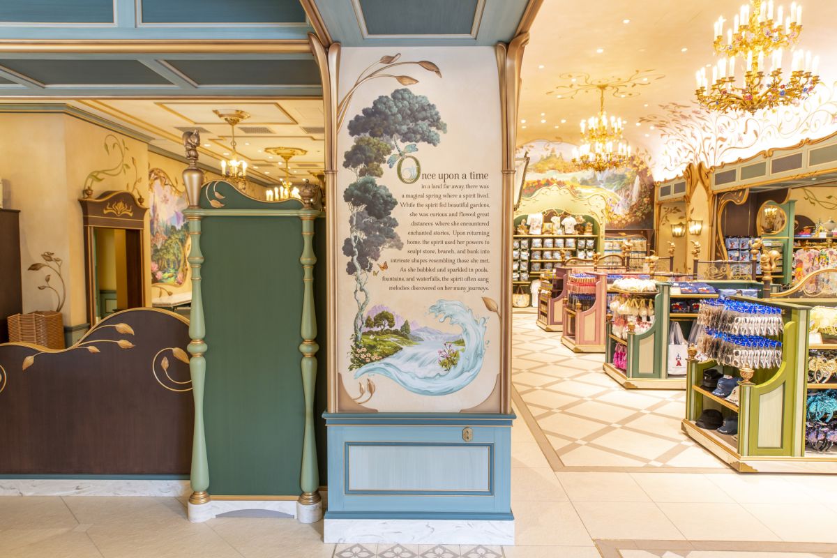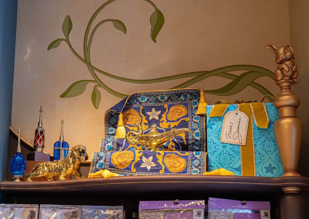 美しいシャンデリアが印象的な店内には、ジャスミンやムーランなどさまざまなディズニーキャラクターから届いたお祝いの品も飾られています。