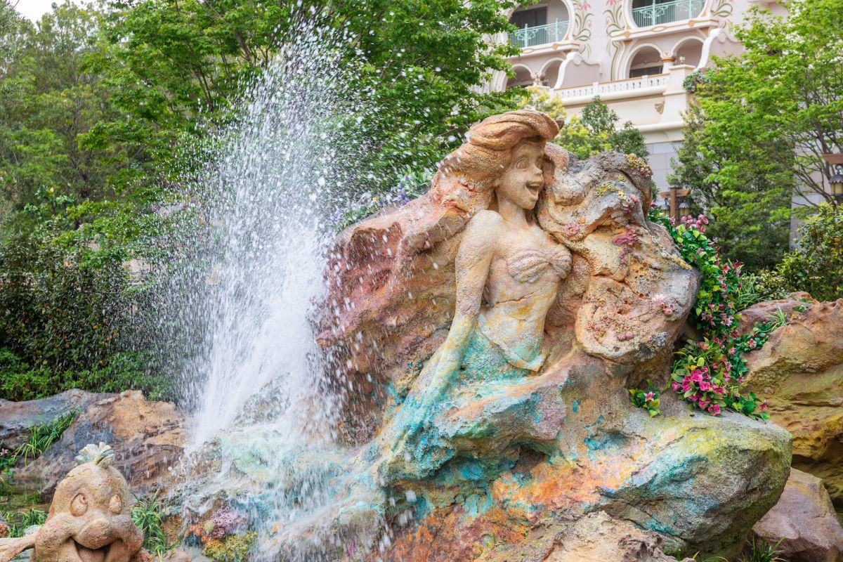 噴き出す泉のタイミングでダイナミックな写真も撮影できます。『リトル・マーメイド』のワンシーンのようなスポットも!
