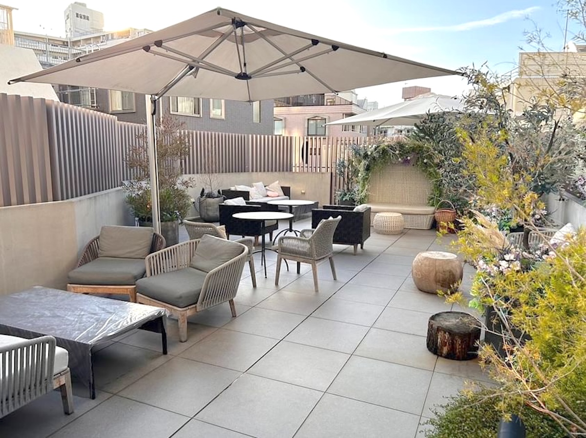 店内奥には、もっと写真を撮りたくなるテラス席を設置。6卓あり、どこも座り心地のいいふかふかの座席になっています。開放的で気持ちがよく、室内とはまた違ったよさを感じられると人気なのだとか。天気のいい日は、おひさまの下でリラックスタイムを過ごしてみて。