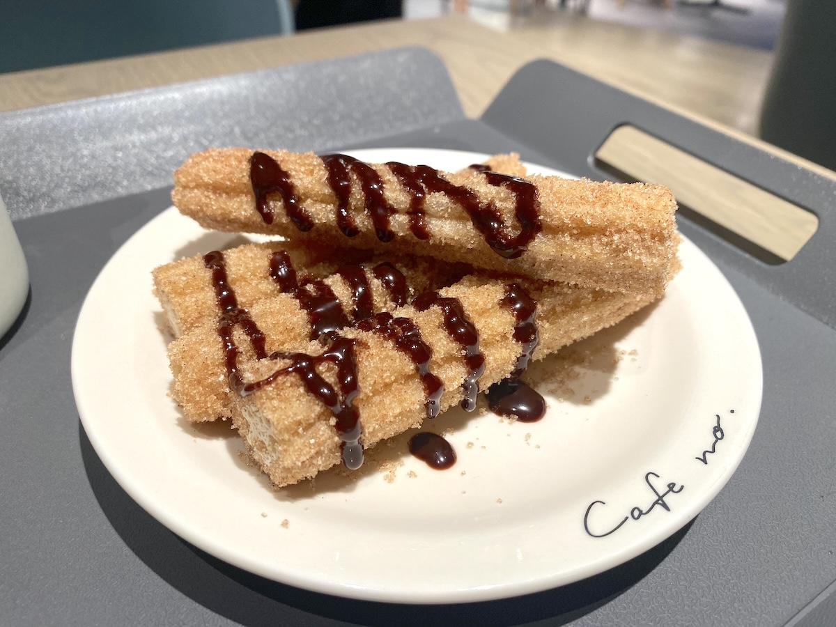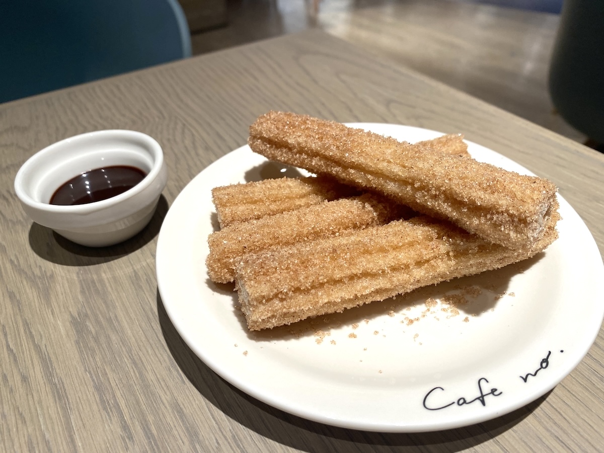 Cafe no.のチュロスは、外はカリッ、中はもちっとした食感の王道タイプ。ひと口食べれば、生地本来の香ばしさと甘みを感じることができます。シナモンパウダーのザクザクとした食感も魅力です。
