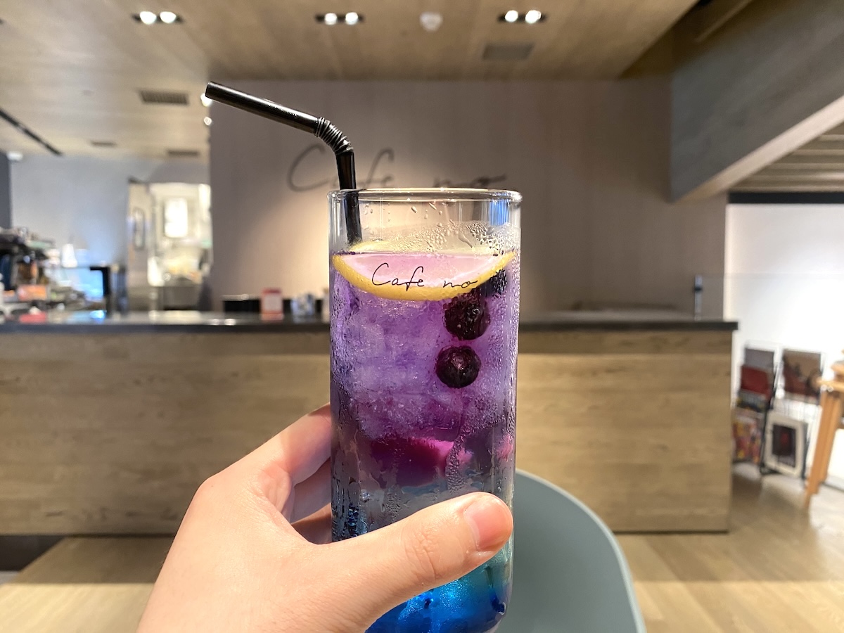 見た目だけでなく、味もさわやかで、チュロスラテなど甘いメニューが苦手な人におすすめです。ブルーベリーの果肉も入っているので、いっしょに味わうとジューシーさも感じられます。