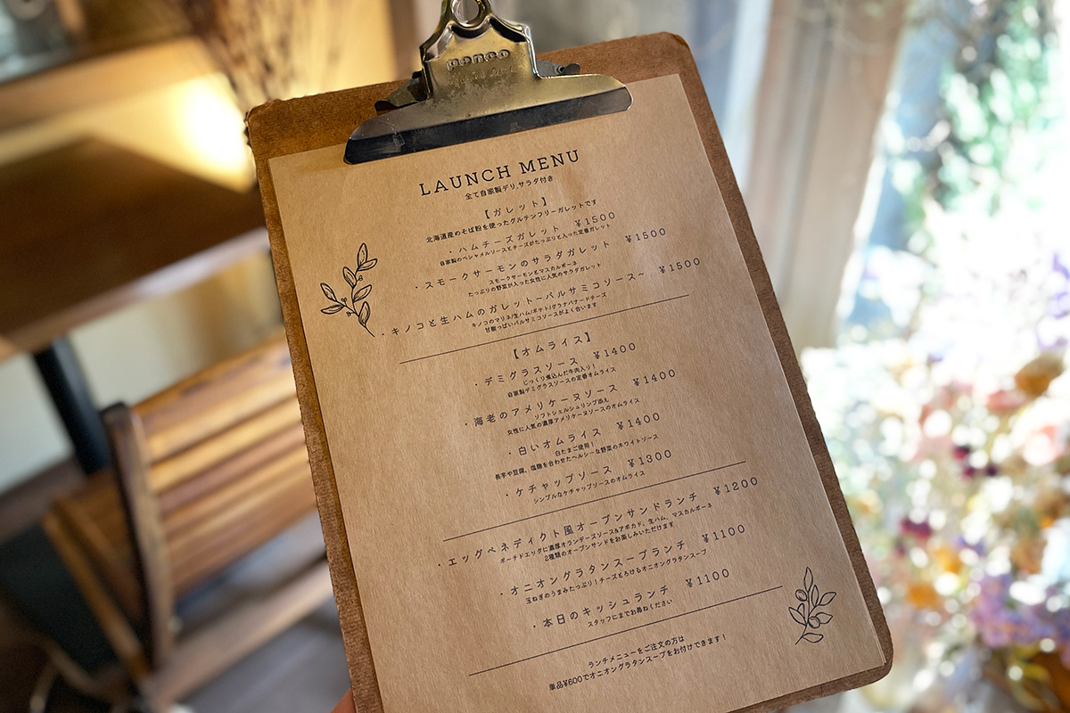 ランチメニューはガレットやオムライス、オープンサンド、スープランチなどがあり、おすすめは北参道店限定のオムライス!