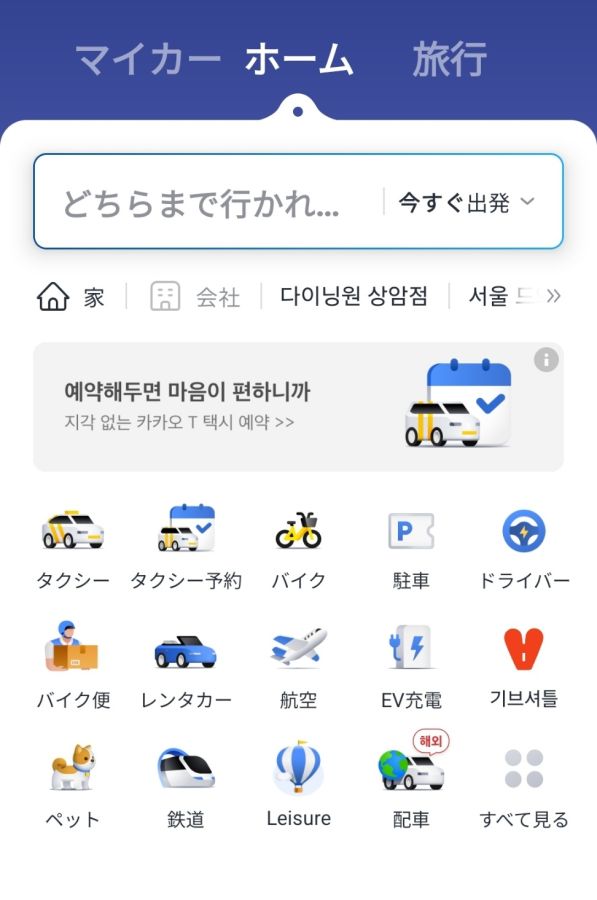 KAKAOときくと、日本でいうLINEのようなメッセージアプリとして知られていますが、同時に様々なサブアプリがあります。その中で日本語でも利用できるようになっているのが、タクシー配車アプリ。日本の方も韓国語なしで気軽に利用できるんです。