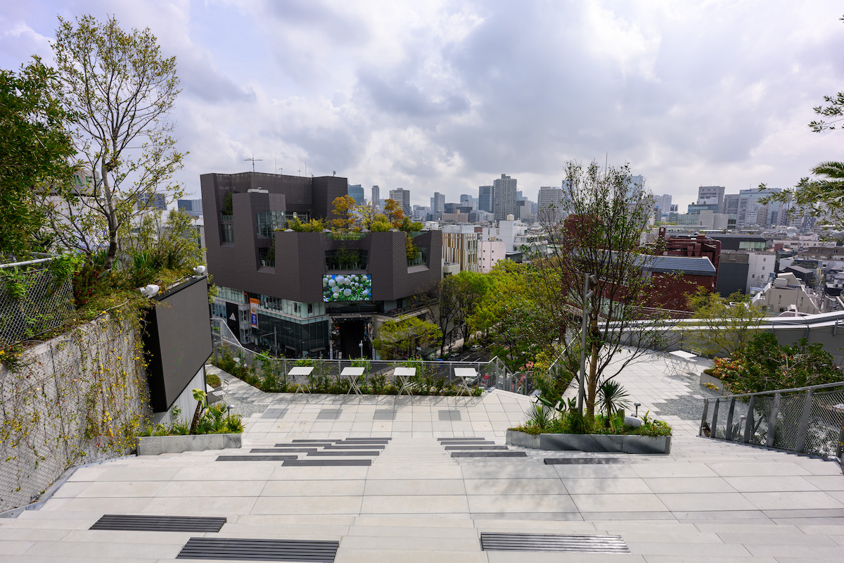 6・7階には神宮前交差点を見下ろせる屋上テラスがあり、都心とは思えないほど緑豊かな空間が広がります。交差点を挟んで対面に位置する東急プラザ表参道「オモカド」と、そのメインエントランス上部にあるサイネージ「オモカドビジョン」を見ることができます。