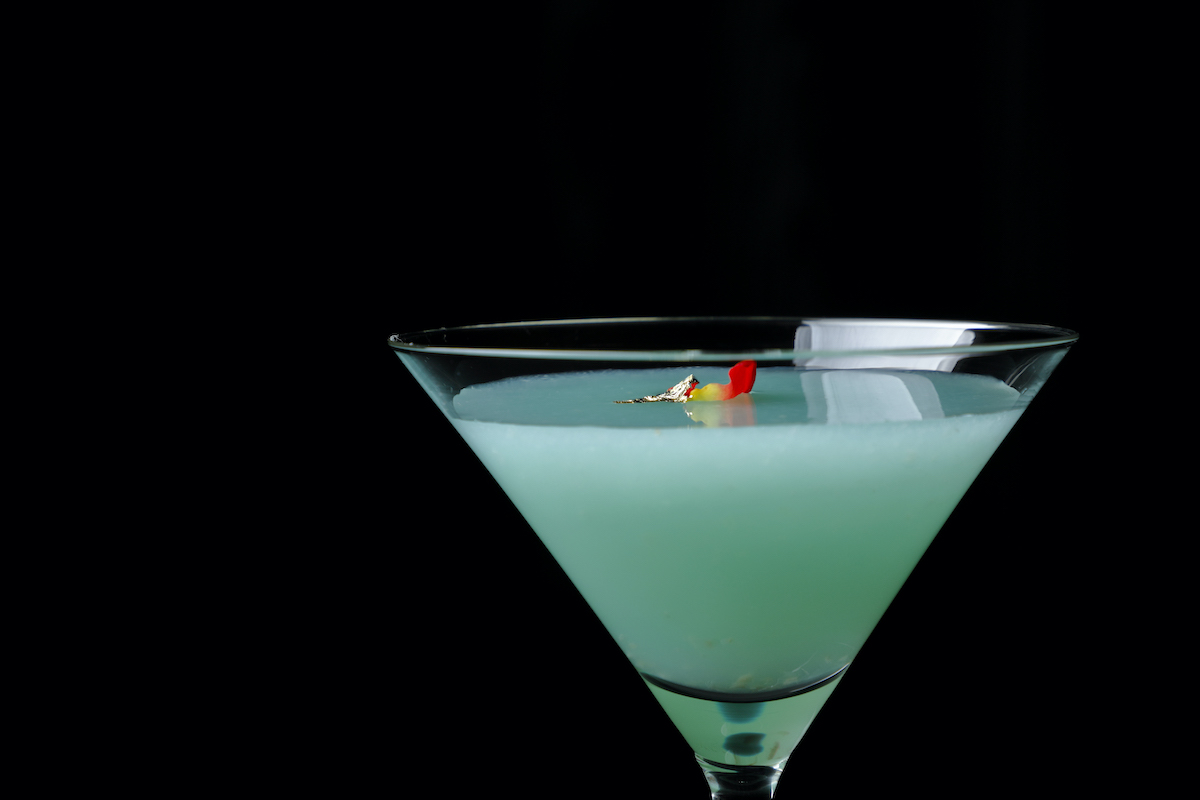 ライチとグレープフルーツジュースを合わせたみずみずしい味わいの「フレッシュライチの楊貴妃」。金木犀の香りを移した白ワイン「桂花陳酒」をベースに、まるごと2個のフレッシュライチを使った鮮やかなスカイブルーのカクテルです。