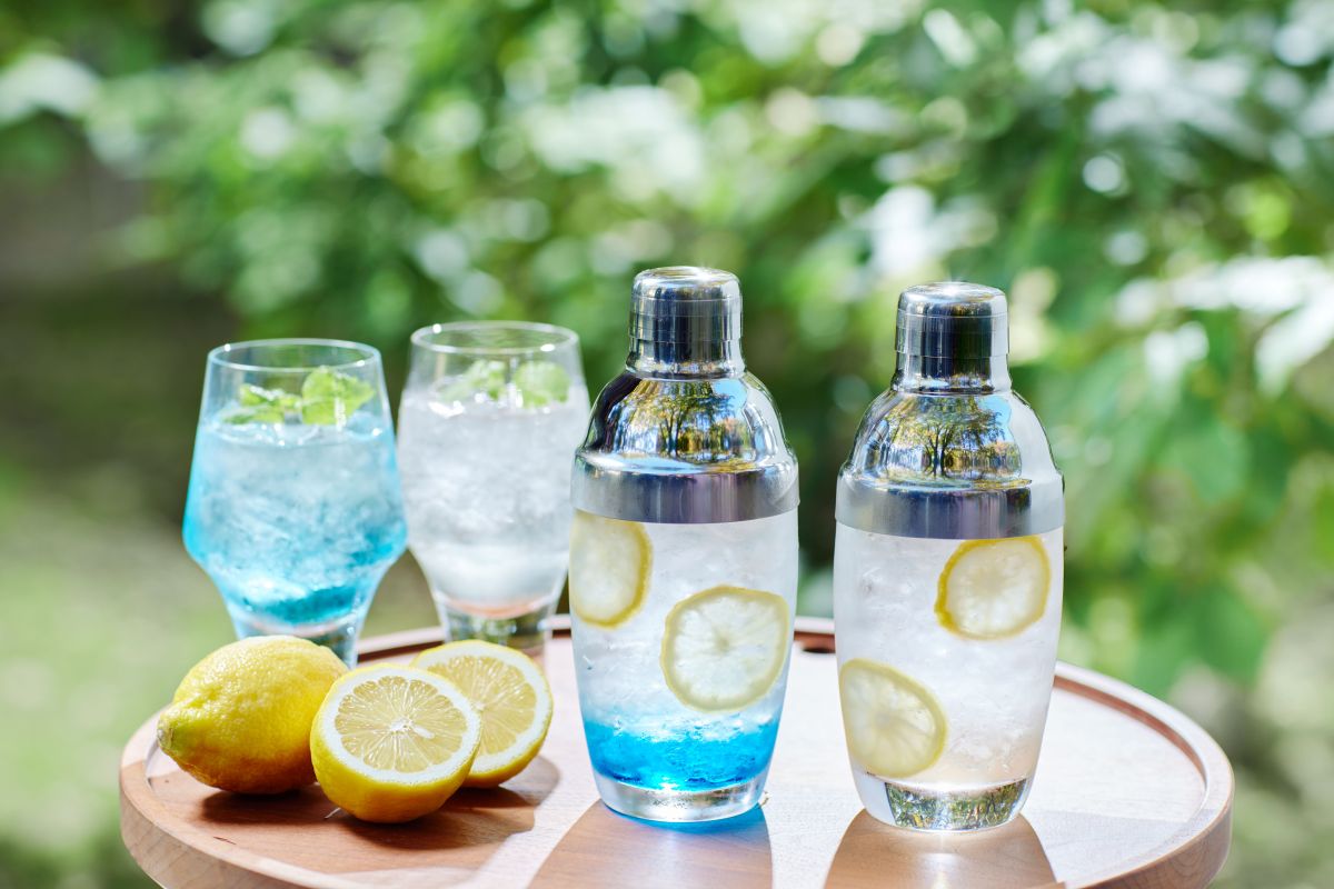 レモネードには輪切りレモンやミントが入っていて、夏らしい爽やかな味わいを楽しめます。また雨の日限定でドリンクの色がさわやかなスカイブルーに変化します。