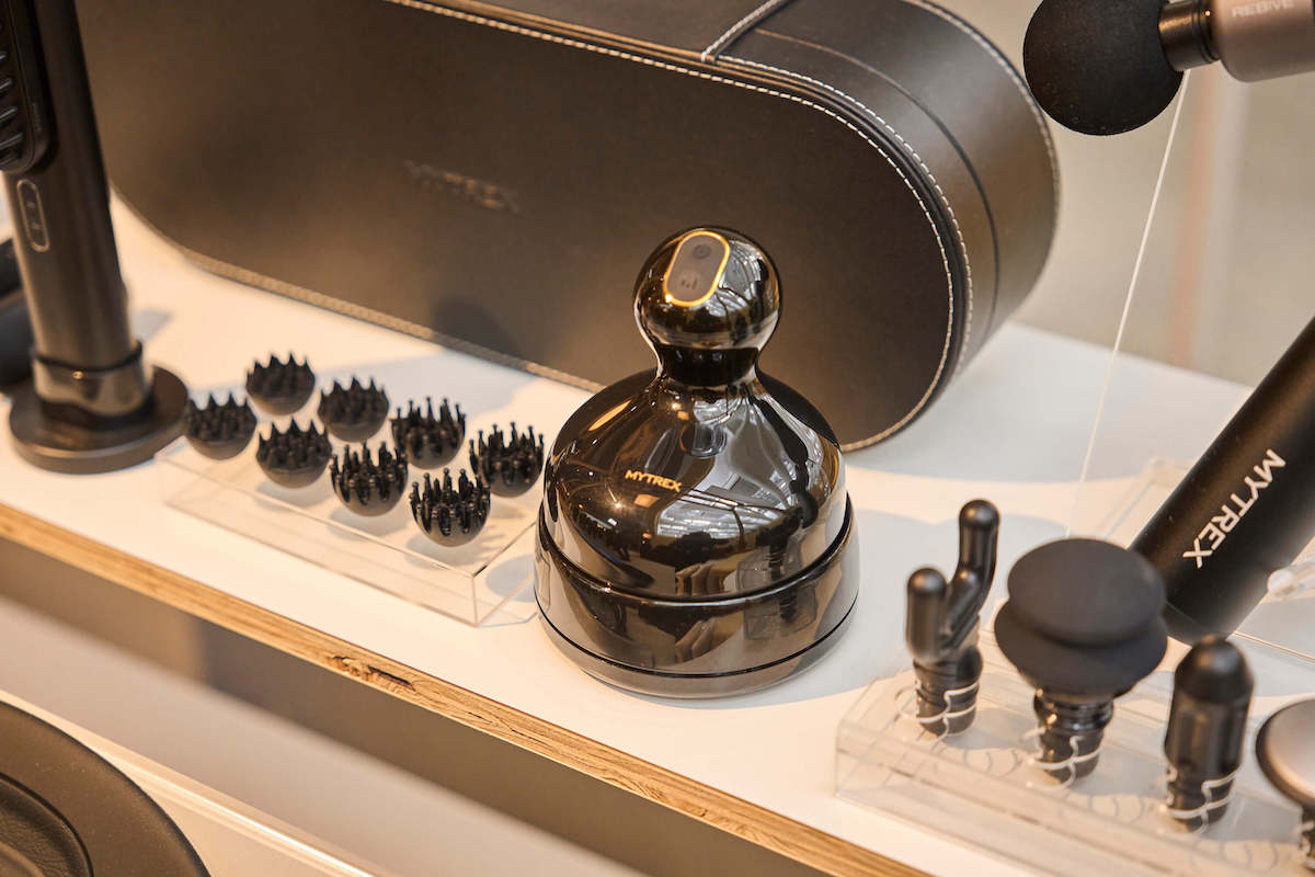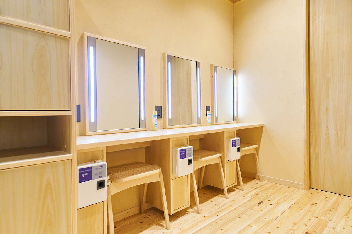 銭湯でシャンプーをしながらヘッドスパ、お風呂上がりに脱衣所で美顔器、ランニング後にマッサージガンで全身をほぐす……など、さまざまなシーンで製品を試せます。洗い場には最新のシャワーヘッドも2台設置されていますよ。