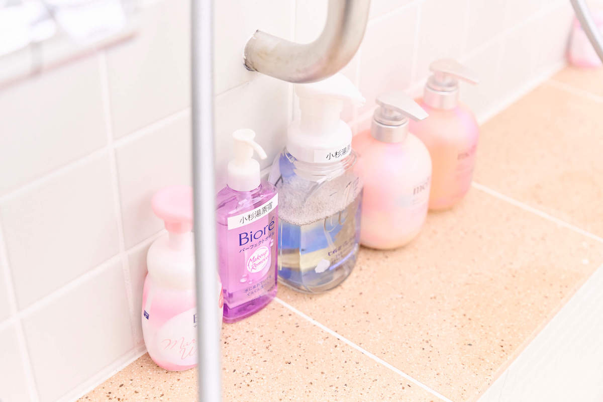 「清」を掲げる「花王」は、清潔・清浄を軸に体験価値を発信。浴室ではソープ、シャンプー類、脱衣所ではスキンケア商品が置かれ、自由に使えます。シーズンごとの新商品を試すこともできますよ。