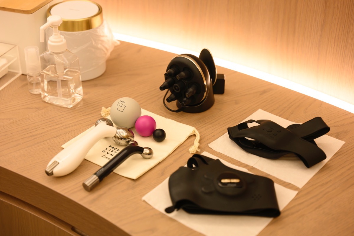 このストア、2階には顔専門トレーニングジム「FACE LIFT GYM」があり、専門のトレーナーが最新の美容機器を使った表情筋トレーニングを手伝ってくれます。このトレーニングには「YA-MAN」が長年行ってきた表情筋の研究から生まれたメソッドが取り入れられているとのこと。