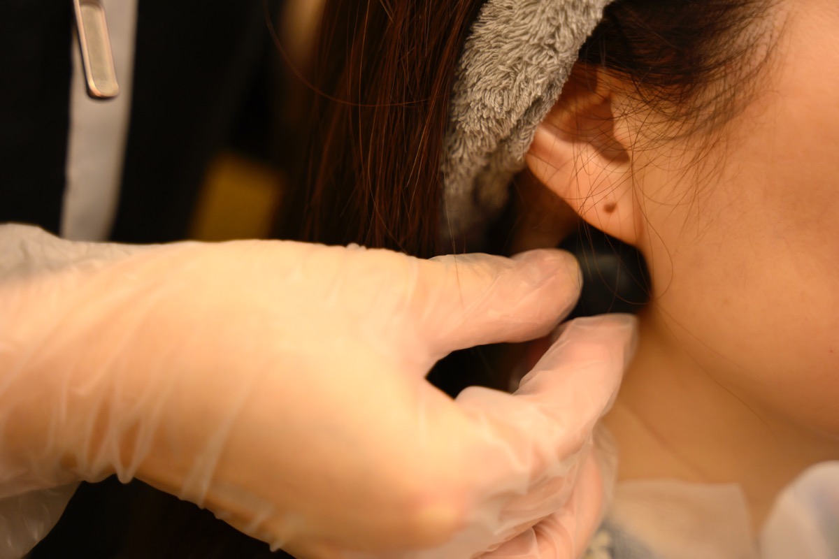 耳の後ろのくぼみには黒いボールがジャストフィット。力を入れて押し付けたり、コロコロ回すような感じで揉みほぐします。