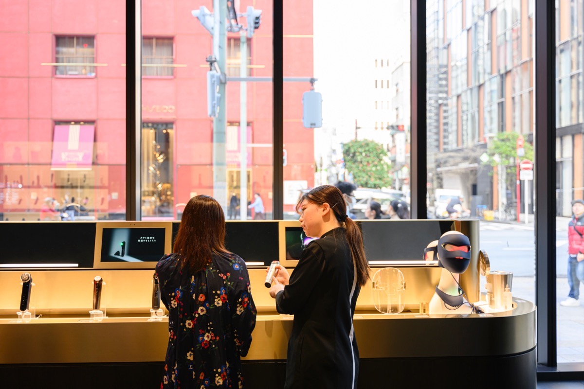 通りに面した横長の店内には、フェイス、ヘア、ボディのパーソナル美容機器や、化粧品などがずらり。一面の窓から華やかな銀座の人通りが見られて、“銀座の真ん中で買い物している!”というのがとてもぜいたくな気分です。