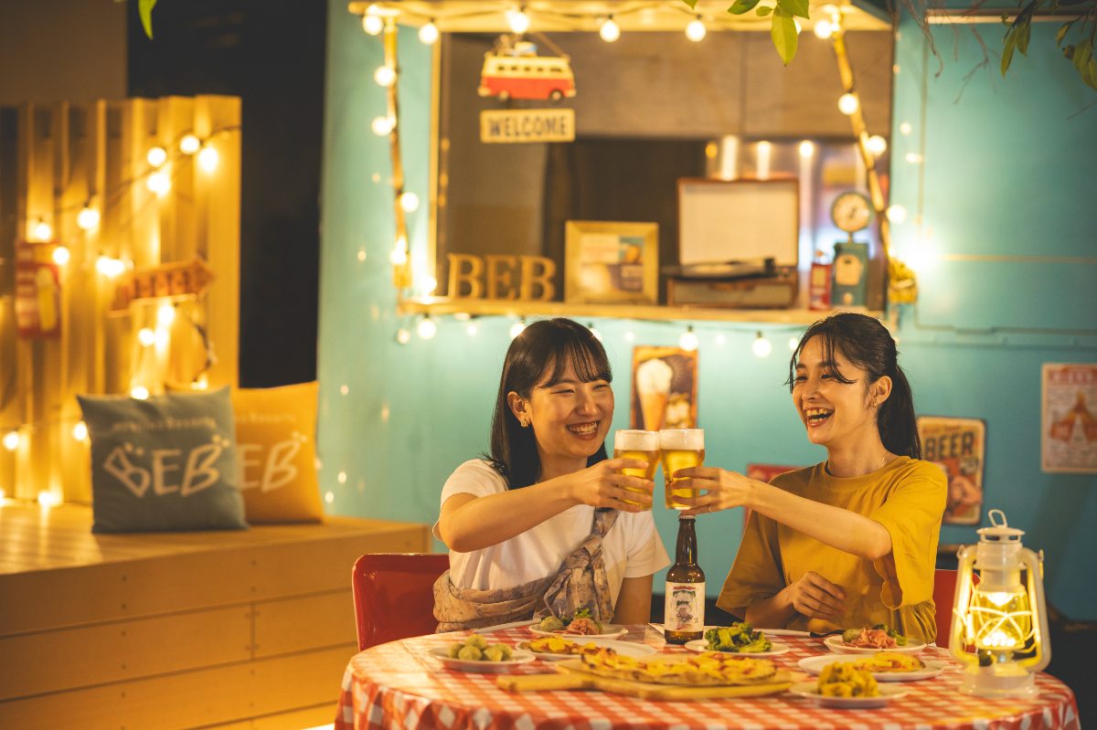 「居酒屋以上 旅未満」の体験を提供する「星野リゾート BEB5沖縄瀬良垣(ベブ)」では、2024年6⽉1⽇(土)〜8⽉31⽇(土)の期間、パブリックスペースのTAMARIBAを1950年代の沖縄をイメージしたレトロな空間にして、オリジナルビールやフードで楽しむ「BEBオキナワンビアナイト」を開催。クラフトビールとトロピカルピッツァで沖縄の夜を楽しみませんか?