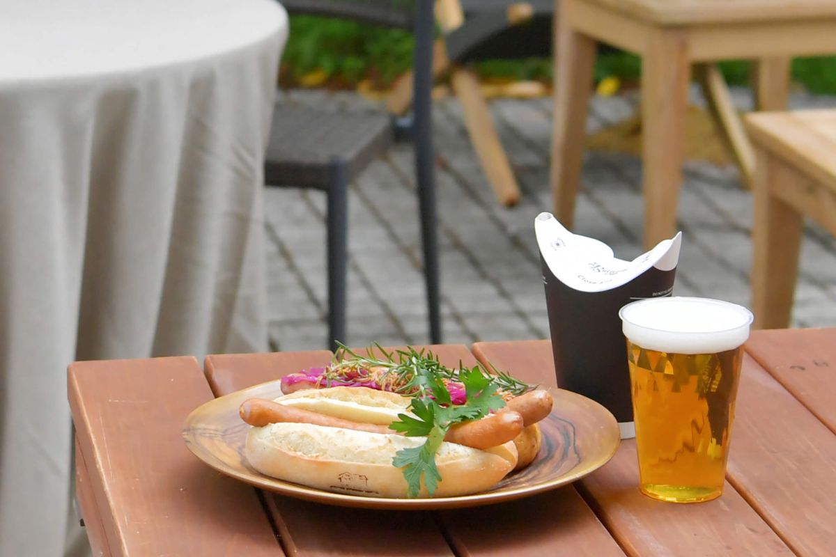 建物の歴史をたどる展示コーナーに併設されるカフェは2024年6月3日(月)にオープン。 「フェリーチェガーデン日比谷」のオリジナルのコーヒーやジャーマンドッグなどテイクアウトも可能となっています。