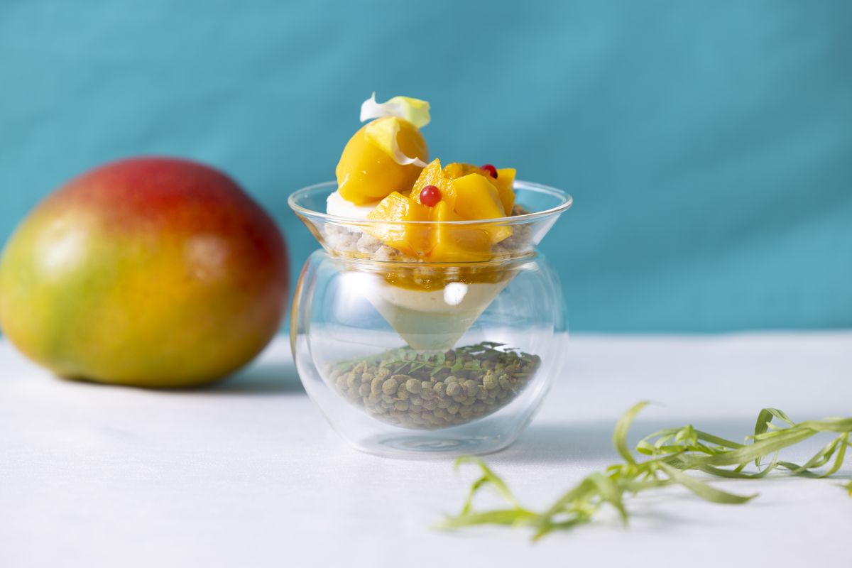 さらに、別添えで提供する「マンゴーパフェ」はお腹を温めてくれる⼭椒がアクセントになっていて、トロピカルなフルーツとの相性も抜群!