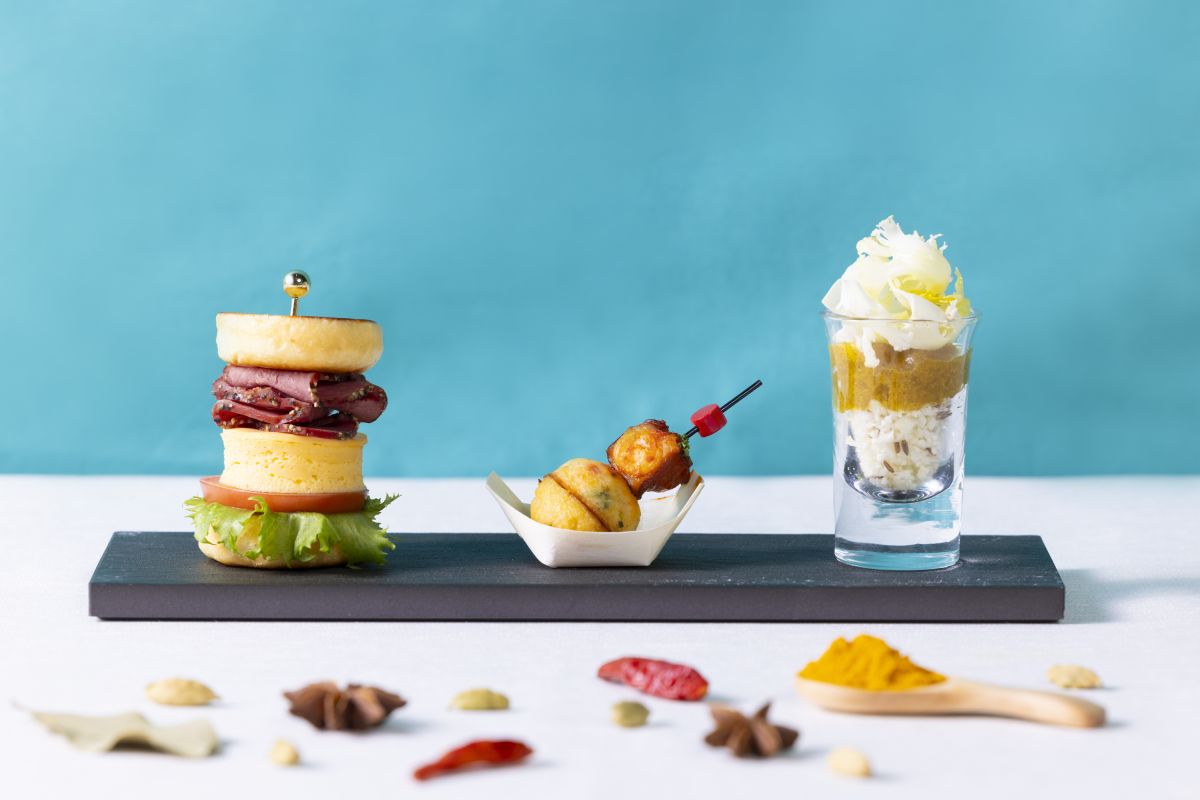 そこで「OMO7大阪(おも) by 星野リゾート」では、夏の暑さによる体調不良「夏バテ」が起こりやすい季節に、スパイスを使⽤したアフタヌーンティーを考案。スパイシーで⾹り⾼い、夏の暑さを乗り切るのにぴったりなアフタヌーンティーが誕生しました。「OMO7大阪」でしか味わえない、特別なメニューで大阪の薬文化とスパイスの効果にふれてみましょう。
