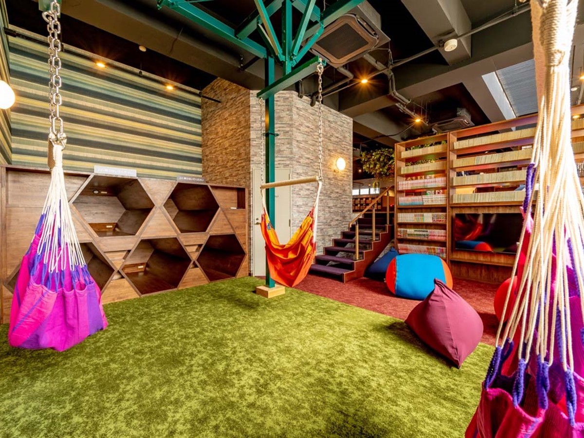 お風呂以外のお楽しみもいっぱい!おしゃれなダイニングパブでは、冷たいクラフトビールにおいしいフードが楽しめます。さらにリラックスルームでは、ハンモックやくつろぎソファで、5000冊のコミックも読み放題。+1800円で朝まで滞在できちゃう、コスパ最高の極楽スポットです。