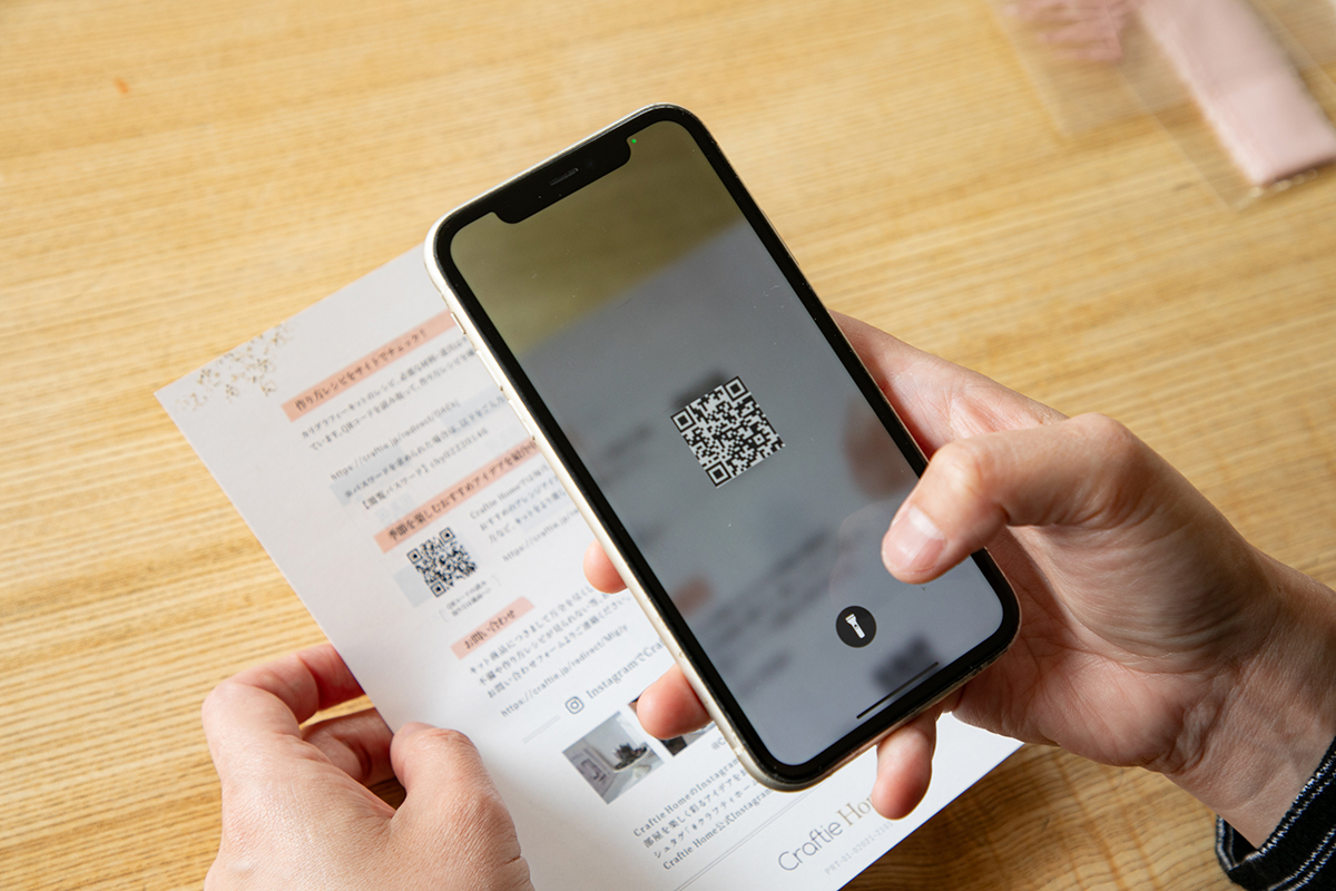 同梱された説明書にある二次元コードから、作り方レシピ動画を読み込みます。まずは動画を見つつ、今回のハンドメイドの流れをつかみましょう。