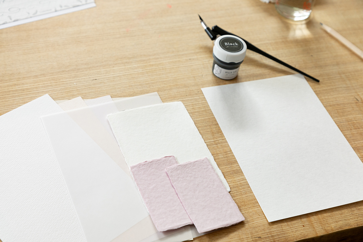 薄い和紙のような素材も。こちらはインクがにじみやすいため、慣れてからトライしたほうが安心です。