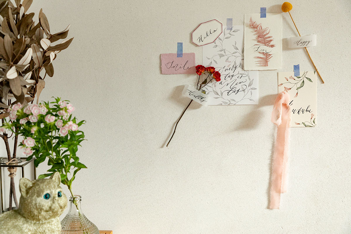 なんとかここまで、飾ってみました。自分が目指す「ビジョンボード」にはまだまだ程遠いけれど、これからもっとできるようになりたい。そんな気持ちになりました。次はどんなフレーズを、どんなディスプレイとともに飾ろうかな。公式サイトには、ディスプレイのアイデアも満載なので、チェックしてみるのもいいかも。そんなことを考えるだけで、ワクワクします。