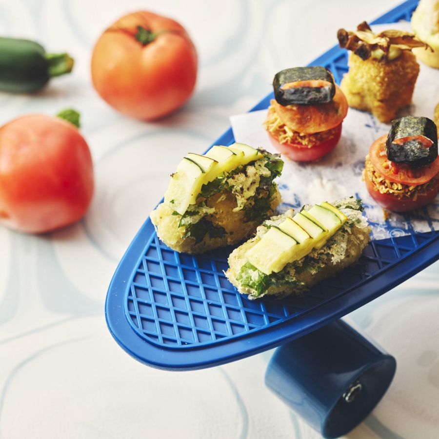 ・花ズッキーニのフライ スモークモッツァレラチーズ 紫蘇 梅干し