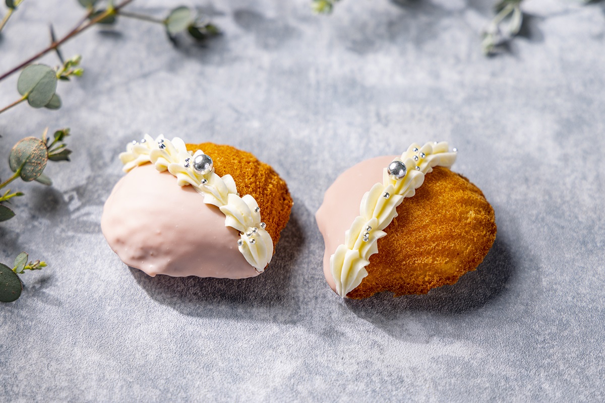 しっとり焼き上げたレモン風味のマドレーヌの中に、桃とグァバのジャムを入れ、シンプルな味わいの中にさわやかな甘みのアクセントをプラス。焼き菓子の魅力を再認識する一品。