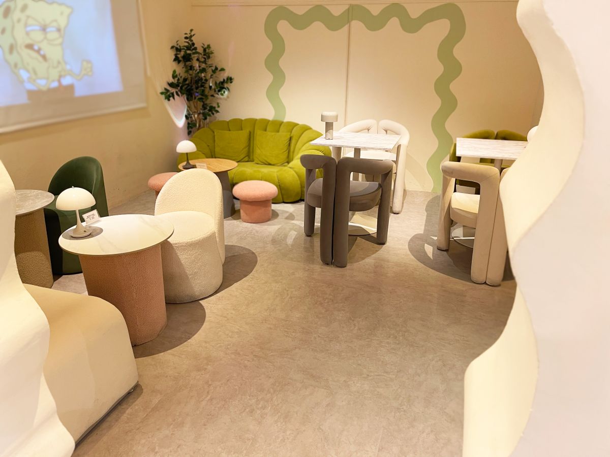 さらに奥にはコンセプトの異なる部屋がもう1つ。こちらはパステルカラーを基調とし、貝がらのような照明やソファが印象的な空間で、まるで海の中のような世界観です。
