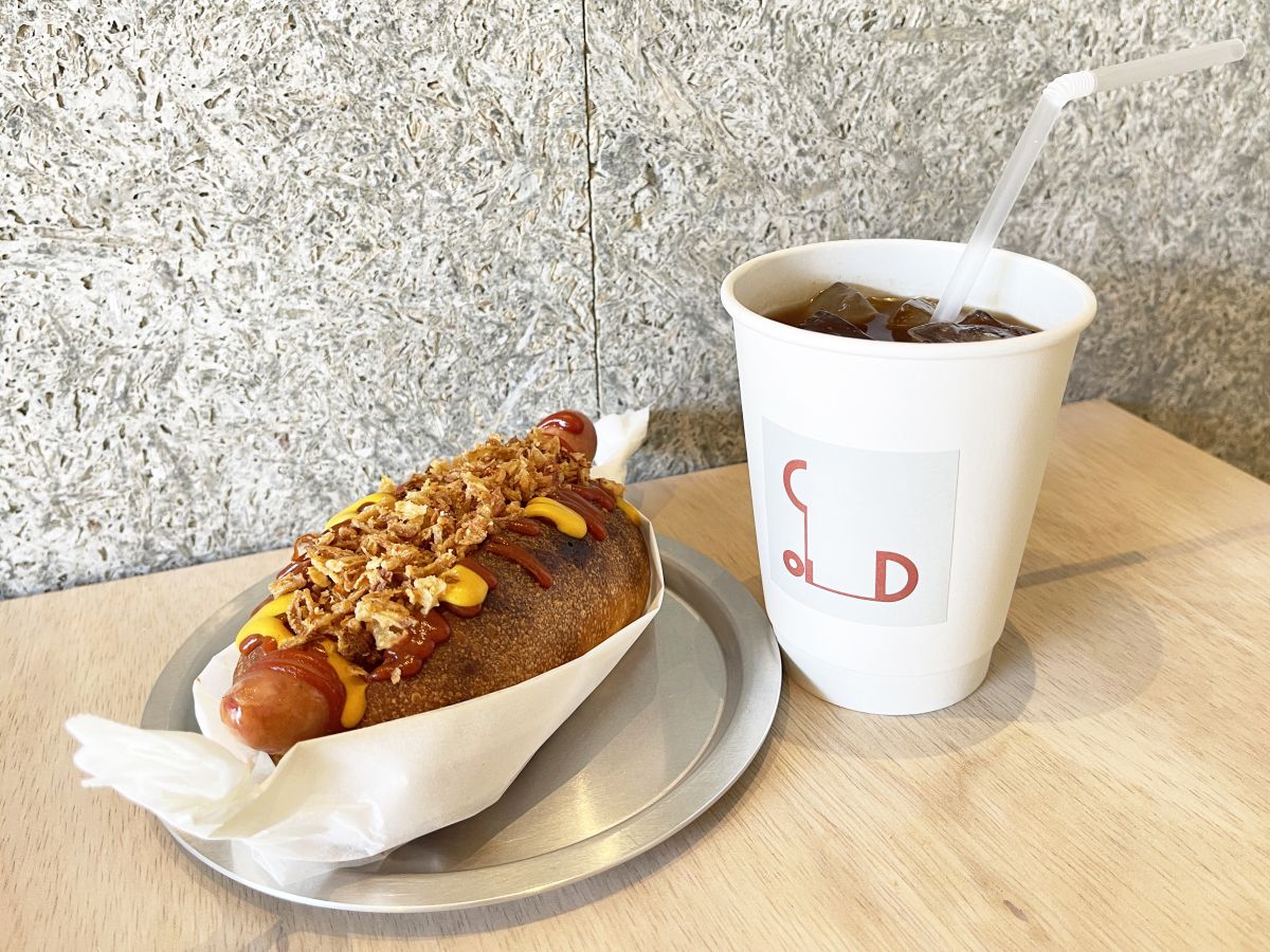 「ホットドッグ」は、沖縄にあるドイツ製法で仕上げる自家製ハム&ソーセージ専門店「TESIO(てしお)」のソーセージと、酵母や麹を使用した手作りパンを販売するカフェ&ベーカリー「コンビニエンスストア髙橋」が「CaD」のために作り上げたパンを使用した、こだわりの1品。