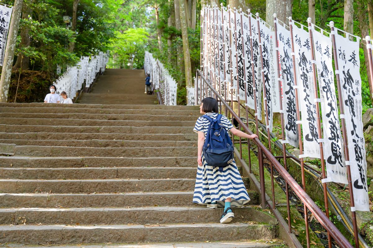 この階段から登っていきますが、登り出して早々になかなか険しい道が待っているので、心折れない準備をしていくことが大切です(笑)。昔から多くの人が歩いてきた道を進んでいくと何だか歴史と一体になったような、神聖な気持ちになれます。