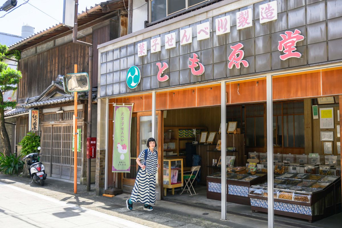 さて、きれいな海を見たら扇ヶ浜から徒歩10分ほどの場所にある田辺の街をお散歩してみて。熊野古道といえば山中の神秘的な景色を思い浮かべるかもしれませんが、扇ヶ浜に面する田辺の街は、古くから水陸交通の要衝として栄え、熊野の玄関口ともよばれる場所。多くの人々や文化が行き交ってきたこの街では、歴史的なみどころだけでなく、地元の人が暮らす素敵な風景に出合えます。レトロな建物を楽しみながら歩いていると何やらよい香りが……。