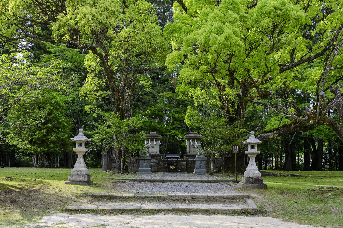 鳥居の先には熊野本宮大社の旧社地が。明治22年(1889)に大水害が起きるまで、熊野川・音無川・岩田川が合流するこの中洲に社殿がありました。この場所には小さな石造りの祠(ほこら)が残っており、神秘的な雰囲気です。