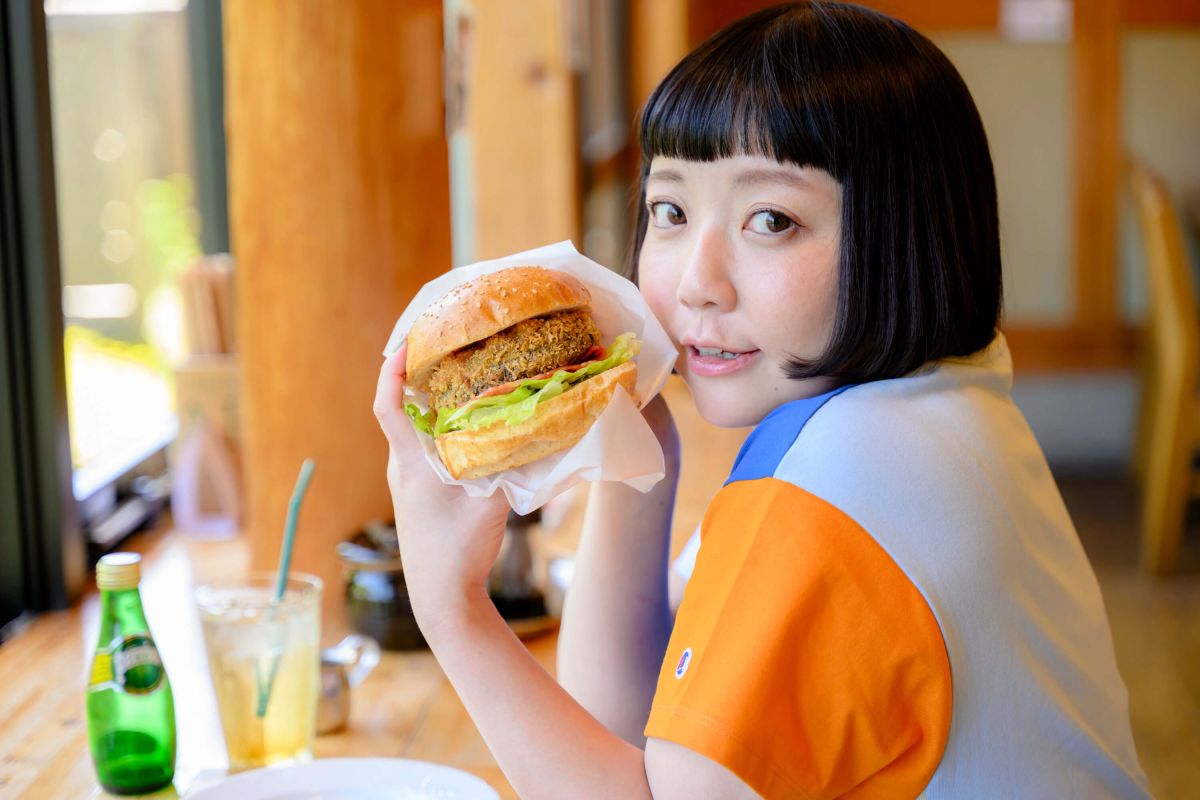 このバーガー、シイタケを使用しているという点で変わっているだけでなく、とっても大きいんです!! テーブルに到着したときに思わず驚きの声が出ました。シイタケ嫌いの人でも食べられると噂の一風変わったバーガーですがお味はいかに…!?
