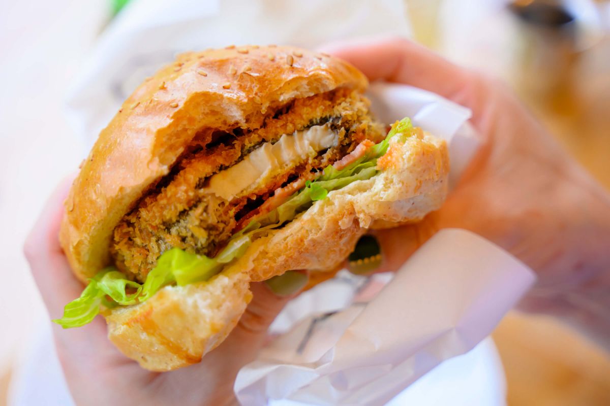 ジャーン!こちらはパティの代わりにシイタケのフライが挟まった名物の「しいたけバーガー」です!