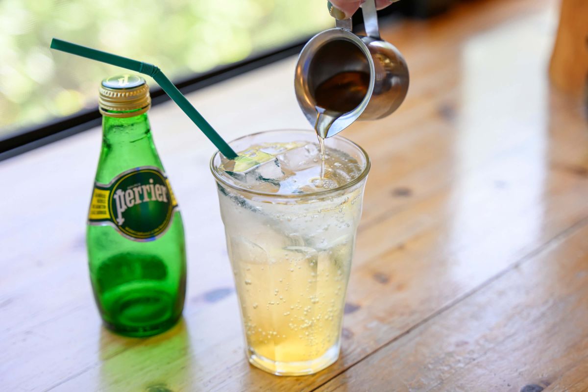 セットで頼んだのは名産の梅を使った梅ソーダ。さわやかな甘さの梅シロップを炭酸に注げば暑い時期にぴったりのシュワシュワドリンクの完成!