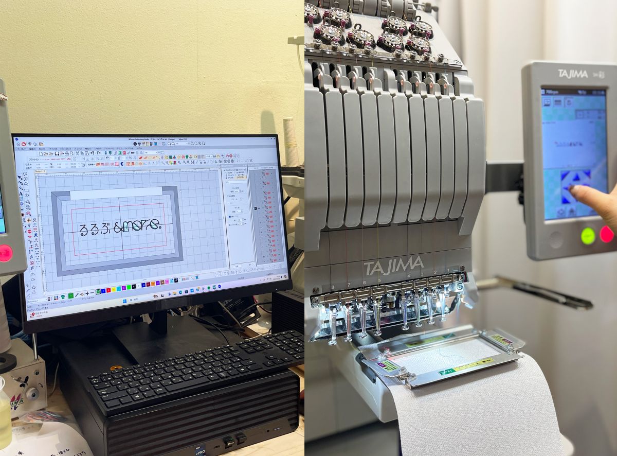 位置や色などを調整してデザインを決めます。刺しゅうできるデザインか、色が反映できるかなどはスタッフがていねいに確認してくれるので安心です。